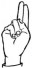 На ћирилици написано АНДЈЕЛИНА БУДИМИР састоји се из 16 слова [?]. Исписано ћириличном једноручном азбуком за глувонеме: